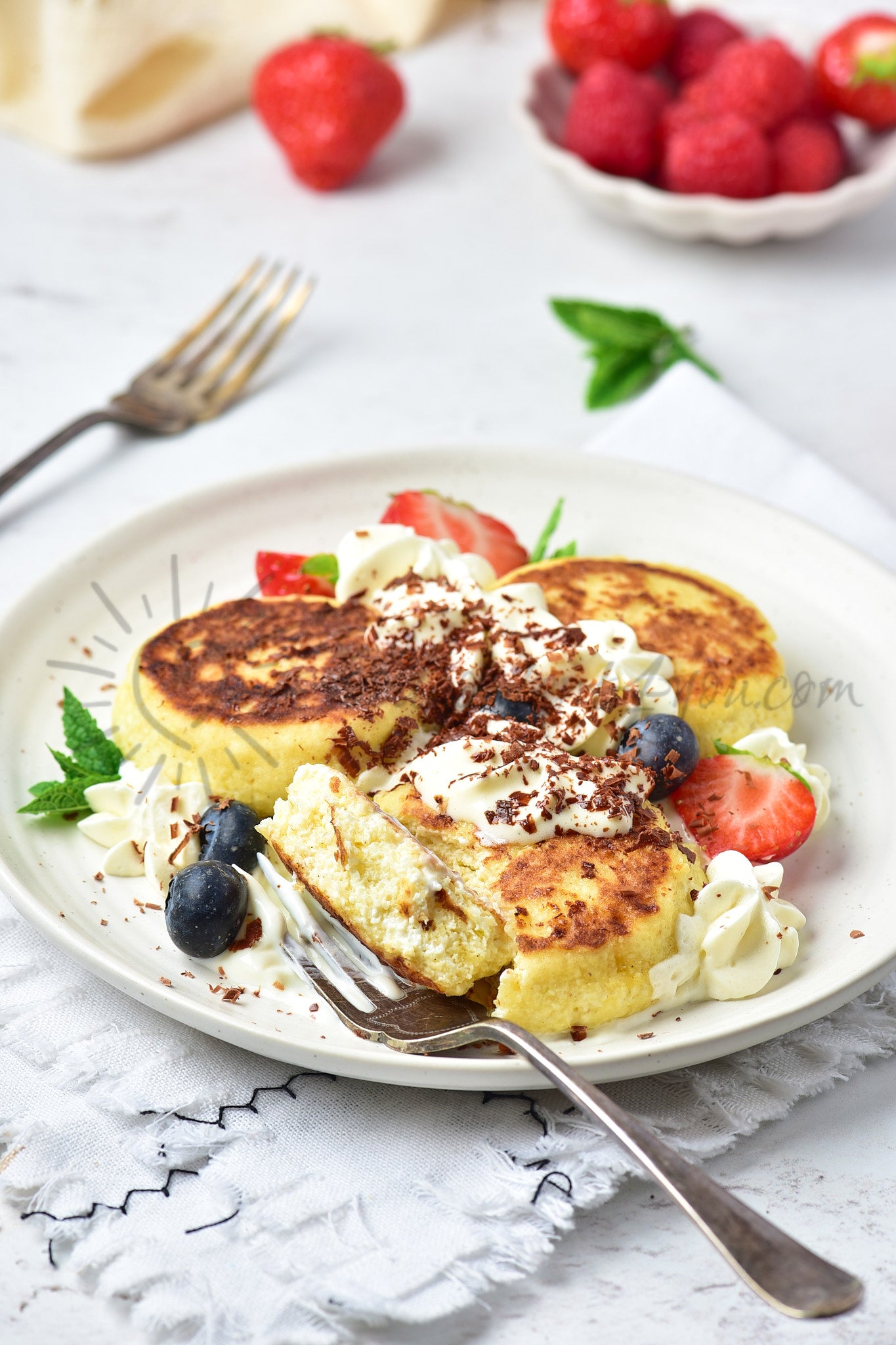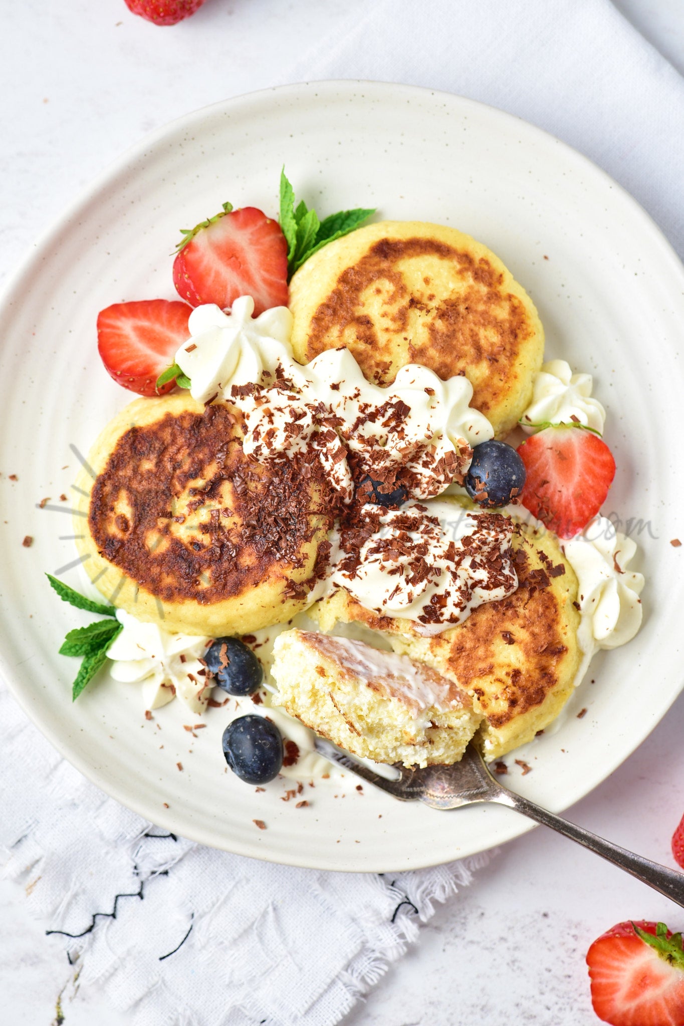 12 professionally styled, high-quality photos of the Cottage Cheese Pancakes.