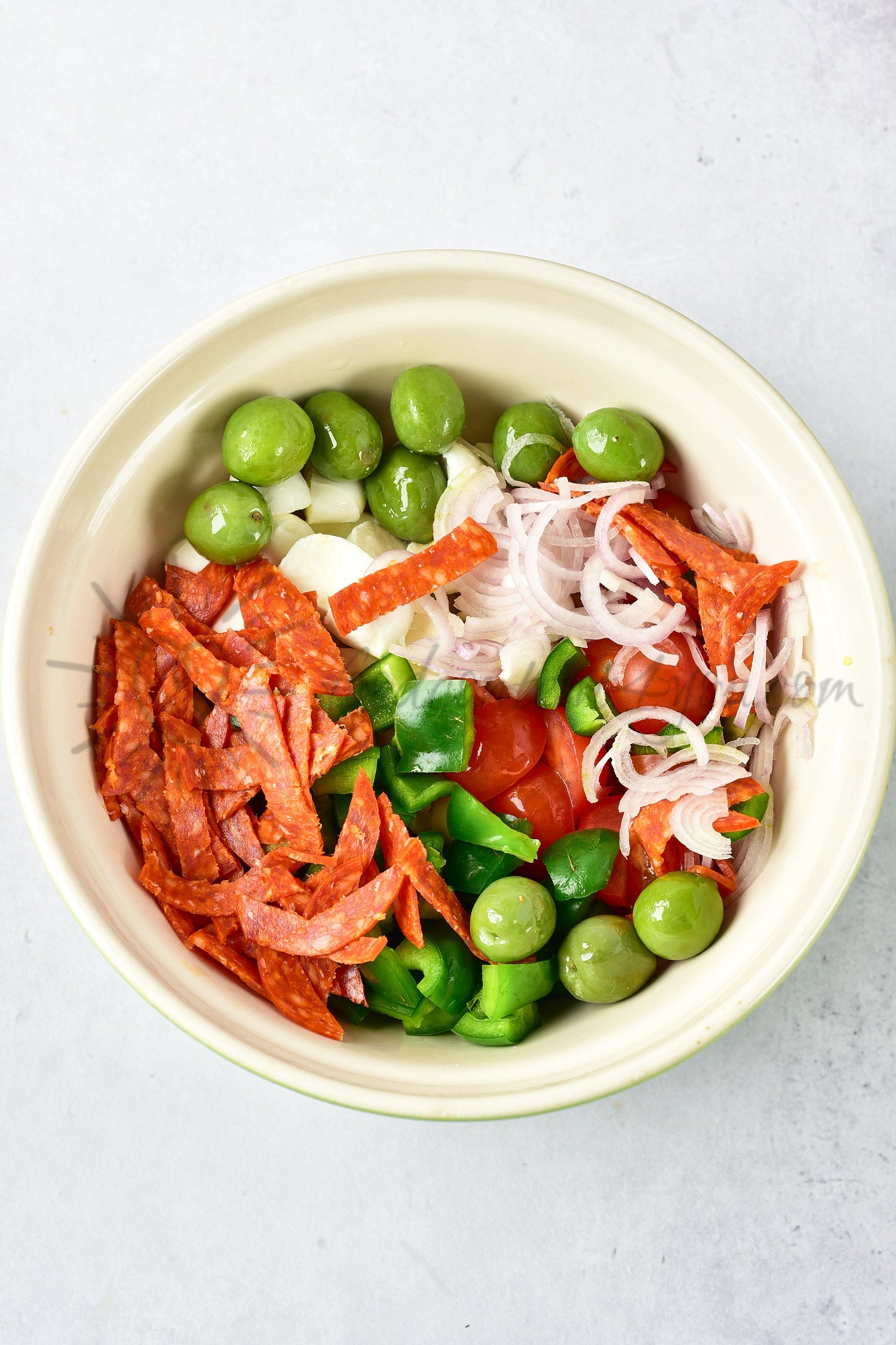 These Italian Pasta Salad photos are vibrant, fresh, and full of color. Featuring fusilli, pepperoni, mozzarella, cherry tomatoes, and bell peppers — a bold, crowd-pleasing dish perfect for any food content creator.